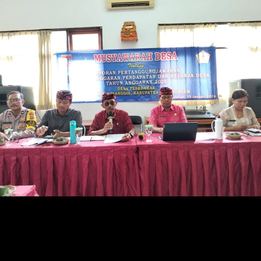 Pemerintah Desa Pesedahan telah melaksanakan Musyawarah Desa (Musdes) tentang Laporan Pertanggungjawaban Realisasi Anggaran Pendapatan dan Belanja Desa Tahun Anggaran 2025. Kegiatan ini dilaksanakan bertempat di Aula Kantor Perbekel Desa Pesedahan sebagai bentuk kewajiban pemerintah desa dalam menyampaikan laporan pengelolaan keuangan desa kepada masyarakat.